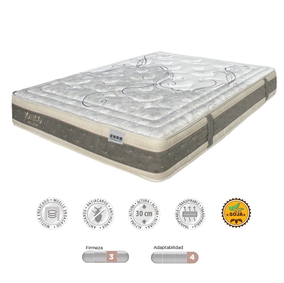 Carcasa de muelle ensacado con box de refuerzo perimetral de 32 Kg./m2 de densidad.