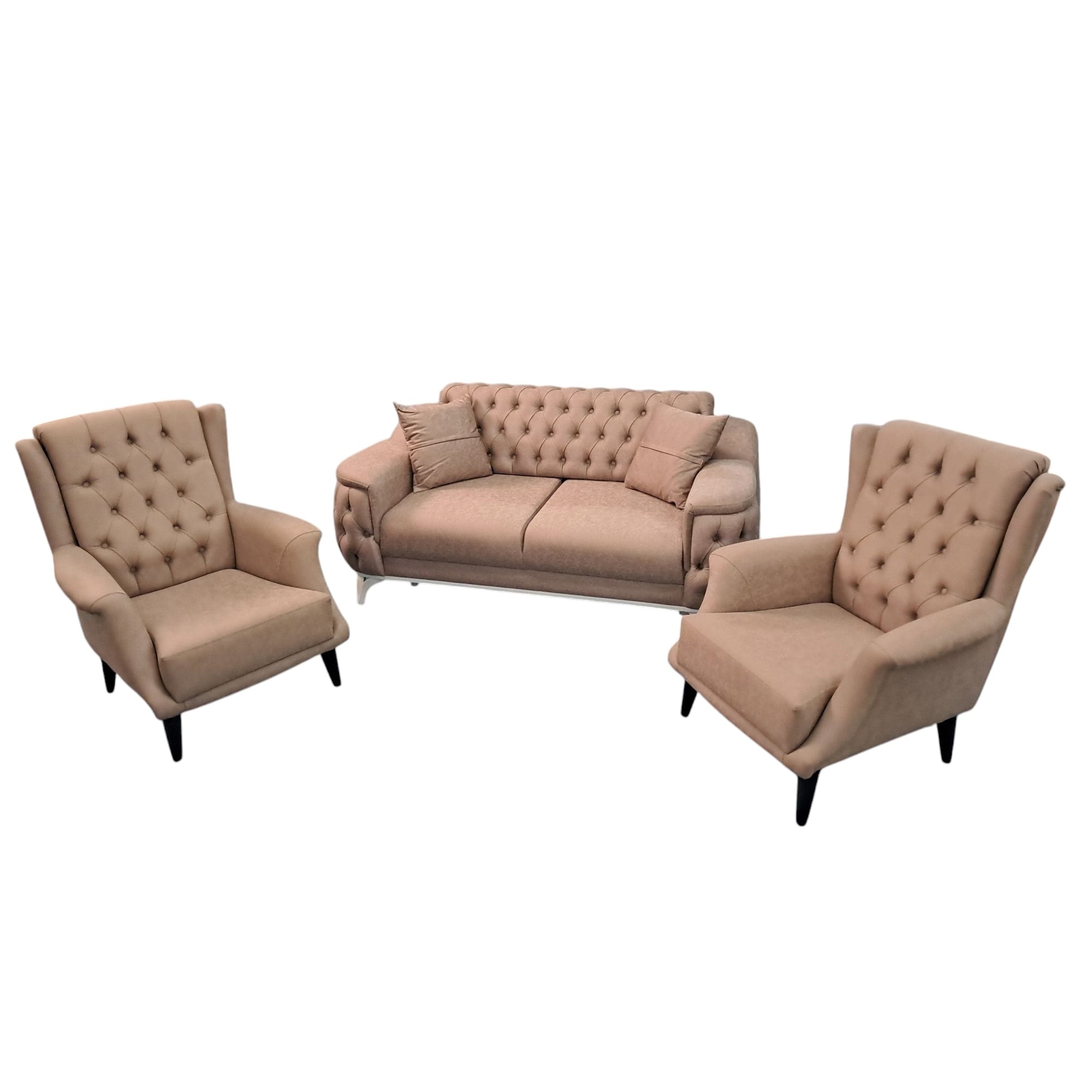 Sofá 4 plazas deluxe modelo ETNA capitoné y 2 butacas capitoné a juego