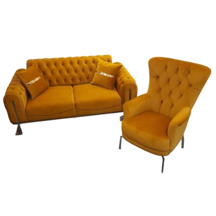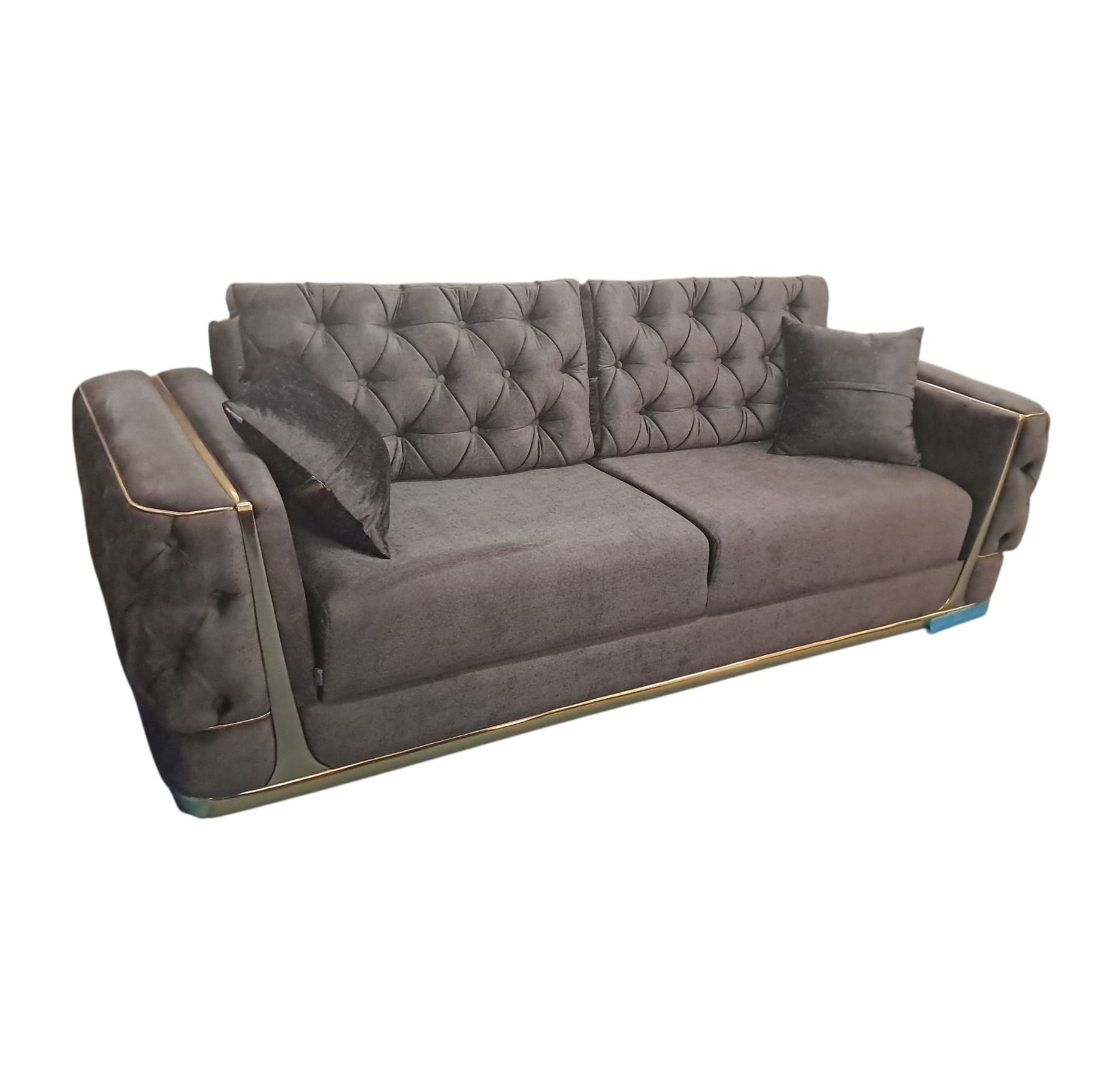 Sofá deluxe RIXOS 4 y 3 plazas cama, capitoné con detalles en color oro o plata.